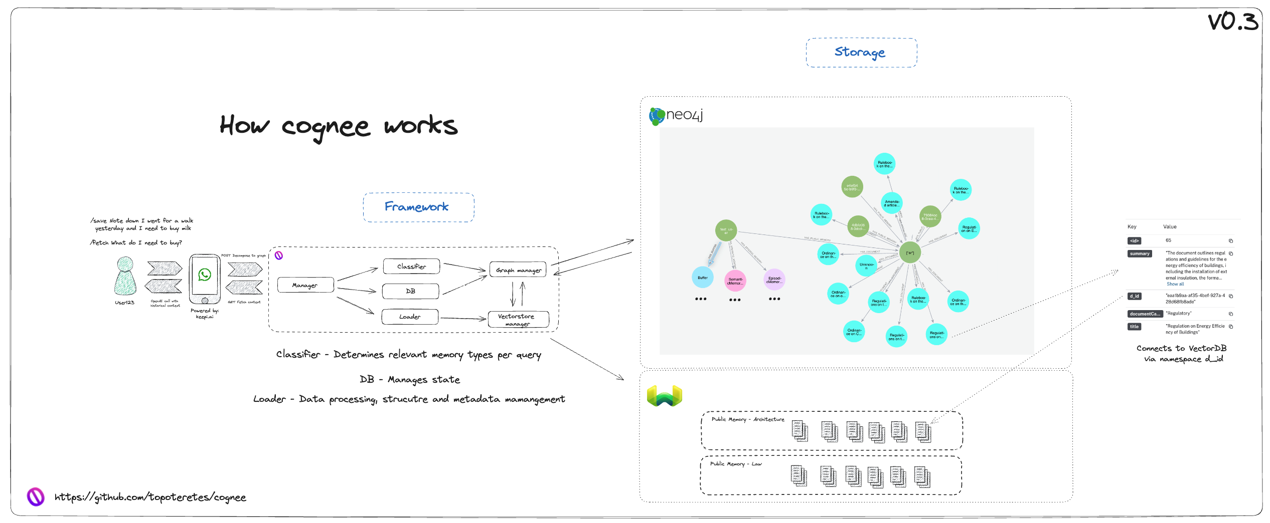 • Cognee uses the Neo4j graph database to map user data into a graph structure consisting of semantic, episodic, and procedural memory.